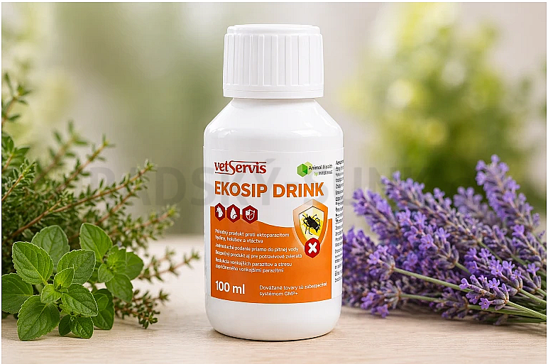 Přírodní produkt proti ektoparazitům drůbeže, holubů a ptactva na rostlinné bázi určený přímo k podání do pitné vody. Ekosip Drink je vhodný i pro potravinová zvířata. Pomáhá v prevenci proti ektoparazitům (čmelíkům), stejně tak eliminuje stres zapříčiněný vnějšími parazity. Silné rostlinné výtažky jsou bezpečné pro zvířata, ale zároveň nechutné pro ektoparazity živící se krví. Postupným dávkováním se tedy snižuje příjem krve a eliminuje se rozmnožovací schopnost u parazitů.