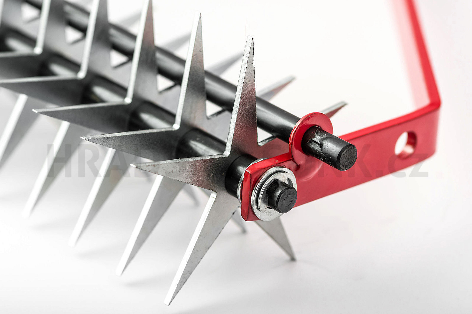 Výrobek je celokovový a určený na dřevěnou násadu průměr 25mm, která není součástí. Na hřídeli se otáčí 16 ostrých nožů tvaru pěticípé hvězdy. Nože jsou silné 2 mm a proto se lépe zapichnou do půdy.